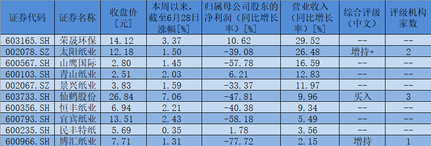 本周以來(lái),在A股造紙板塊的23只成份股中,有17只紙漿概念股,隨著紙漿2209合約的上漲,其股價(jià)也處于上漲之中。截至6月28日收盤,仙鶴股份、冠豪高新和榮晟環(huán)保等3只個(gè)股期間累計(jì)漲幅均超3%。