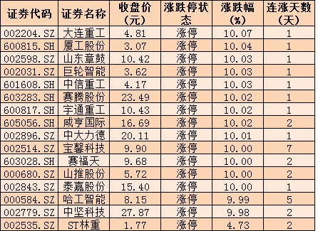 表:7月1日,16只機械設備行業(yè)漲停股情況: