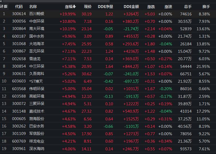 7月1日,環(huán)保行業(yè)漲幅居前達2%。其中,百川暢銀、國中水務、*ST博天等3只概念股集體漲停。