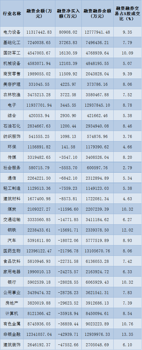 表:7月1日申萬一級行業(yè)兩融交易情況: