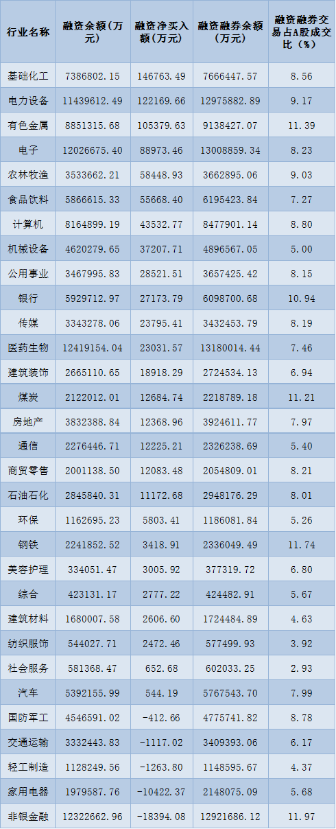表:7月4日申萬一級(jí)行業(yè)兩融交易情況:
