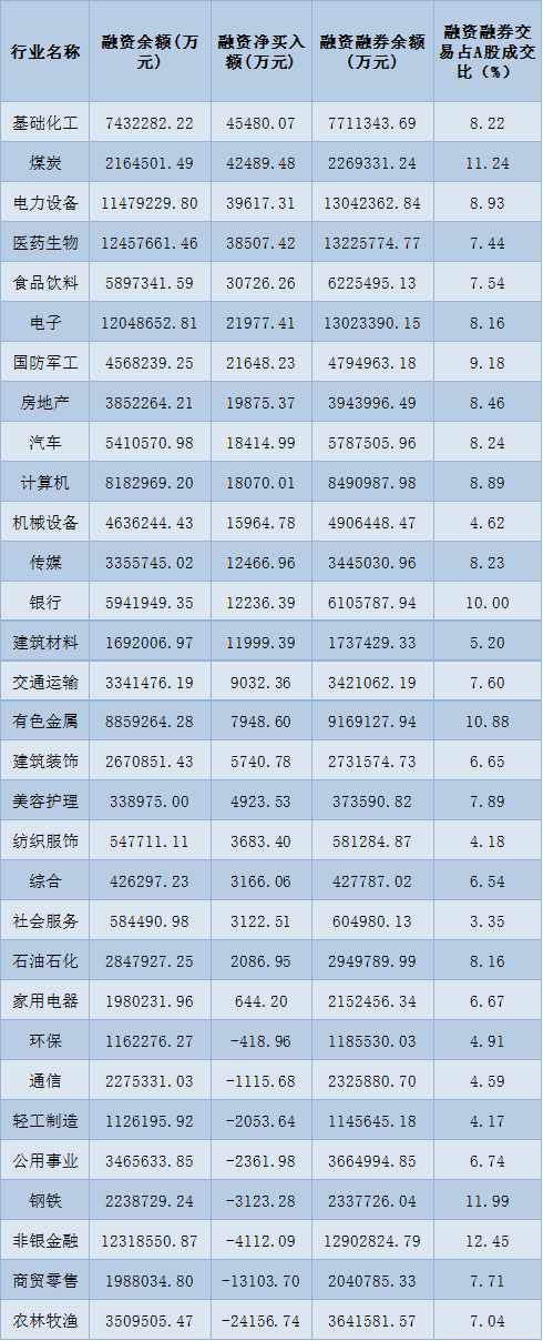 表:7月5日申萬一級行業(yè)兩融交易情況: