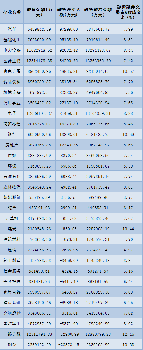 表:7月7日申萬(wàn)一級(jí)行業(yè)兩融交易情況: