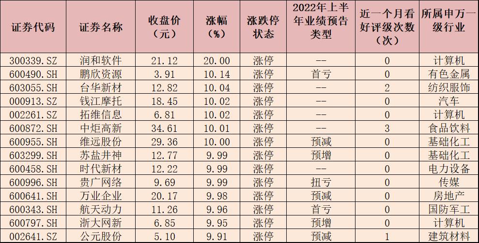 表:7月19日漲停的中證1000指數(shù)成份股一覽