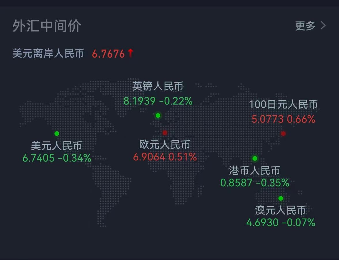 周五,在岸人民幣兌美元16:30收盤報(bào)6.7507,較上一交易日漲55個(gè)基點(diǎn)。人民幣兌美元中間價(jià)報(bào)6.7405,調(diào)升231個(gè)基點(diǎn),本周累計(jì)調(diào)升32個(gè)基點(diǎn)。