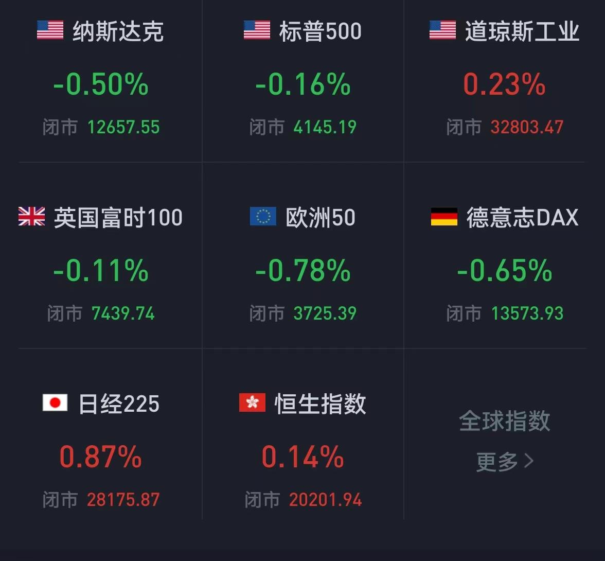 周五,美國三大股指收盤漲跌不一。道指漲幅達(dá)0.23%報(bào)32803.47點(diǎn),標(biāo)普500指數(shù)跌幅達(dá)0.16%報(bào)4145.19點(diǎn),納指跌幅達(dá)0.5%報(bào)12657.56點(diǎn)。本周,道指跌幅達(dá)0.13%,標(biāo)普500指數(shù)漲幅達(dá)0.36%,納指漲幅達(dá)2.15%。