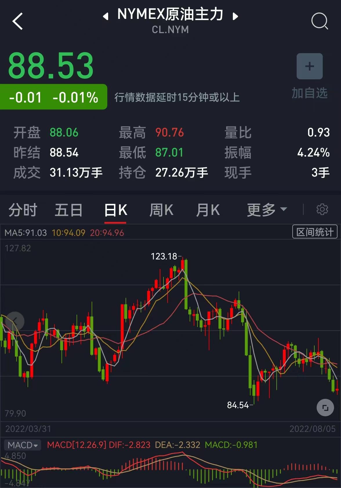 周五,國際油價(jià)表現(xiàn)分化,美油9月合約跌幅達(dá)0.01%,報(bào)88.53美元/桶。布油10月合約漲幅達(dá)0.57%,報(bào)94.66美元/桶。本周,美油9月合約跌幅達(dá)10.23%,布油10月合約跌幅達(dá)8.95%。