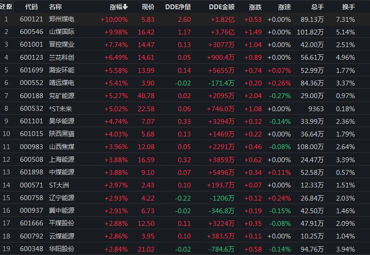 煤炭行業(yè)漲逾3%