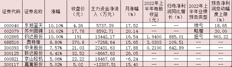 表:8月10日漲幅超5%的TOPCON電池概念股