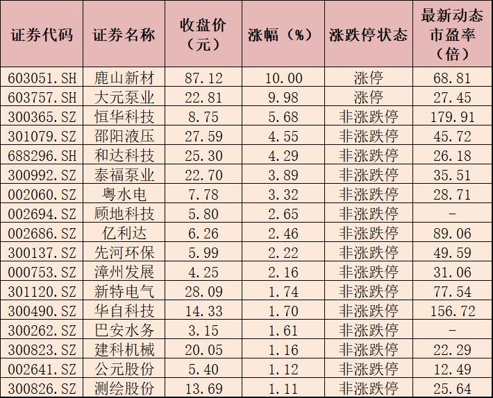 表:8月10日水利板塊內(nèi)漲幅超1%個(gè)股一覽