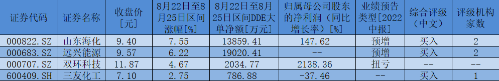 表:8月22日至8月25日,純堿板塊個(gè)股行情一覽