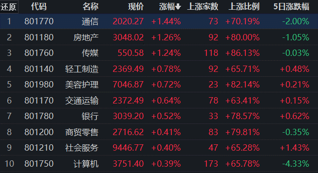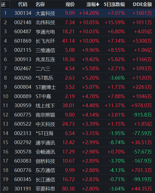 通信行業(yè)領(lǐng)漲