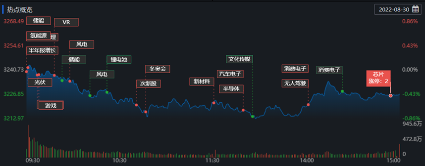 8月30日,A股三大指數(shù)開盤后不斷震蕩走低,至14:00左右滬指在消費(fèi)電子等板塊帶動(dòng)下出現(xiàn)回升。截至收盤,上證指數(shù)跌0.42%,深證成指跌0.39%,創(chuàng)業(yè)板指跌0.70%;滬深兩市合計(jì)成交額8385.2億元,縮量0.86%;北向資金凈買入-49.80億元;總體來看,A股個(gè)股漲少跌多,上漲個(gè)股為2213只,下跌個(gè)股2540只。