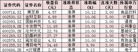 表:連續(xù)上漲3日且今日收盤漲停個股情況: