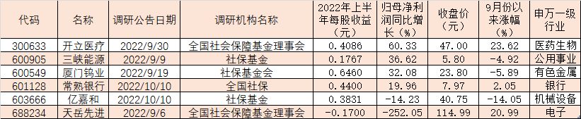 表:9月份以來截至10月12日獲社?;鹫{(diào)研的公司一覽