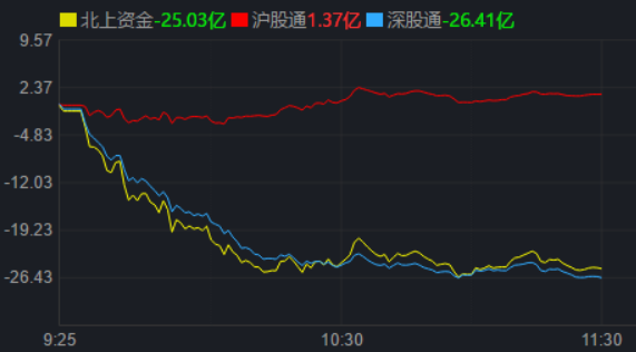 從資金面來看,10月21日上午,北向資金凈賣出金額達(dá)25.03億元。