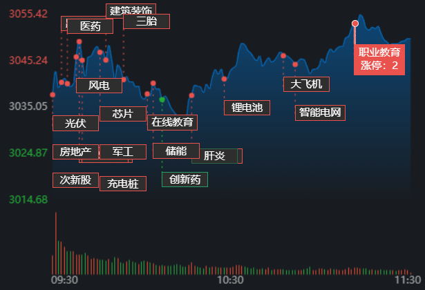 10月21日早盤,A股市場三大指數(shù)走勢震蕩,上證指數(shù)表現(xiàn)最強。截至上午11:30,上證指數(shù)漲0.50%,報3050.18點;深證成指和創(chuàng)業(yè)板指漲幅分別為-0.03%和0.03%;滬深兩市合計成交額4263.4億元。總體來看,A股市場個股漲多跌少,有43只個股漲停,跌停股4只。