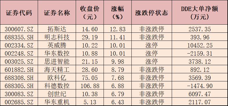 表:10月25日漲幅前十的工業(yè)母機概念股一覽