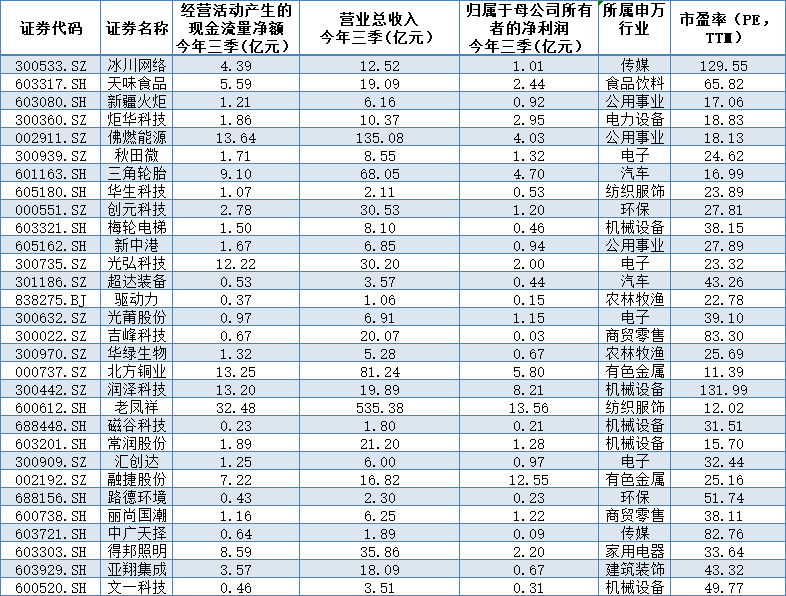 那么,從現(xiàn)金流角度深入盤點(diǎn)A股上市公司三季報(bào),哪些公司較有“錢”景?