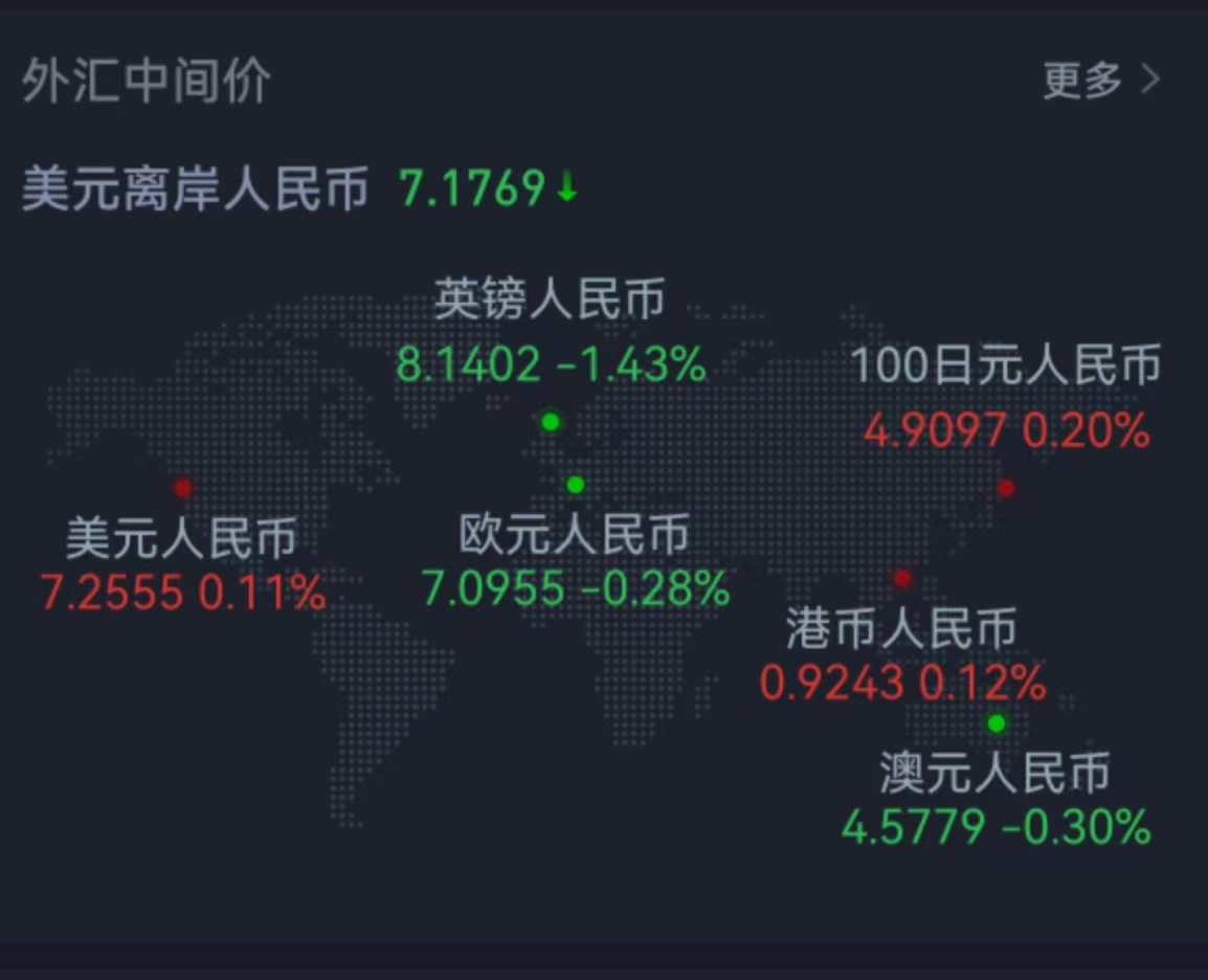 周五在岸人民幣兌美元16:30收盤報(bào)7.2703,較上一交易日漲497個(gè)基點(diǎn),本周累跌138個(gè)基點(diǎn);周五夜盤23:30收?qǐng)?bào)7.1927。人民幣兌美元中間價(jià)報(bào)7.2555,調(diào)貶83個(gè)基點(diǎn),本周累計(jì)調(diào)貶857個(gè)基點(diǎn)。交易員表示,市場(chǎng)體現(xiàn)出樂觀態(tài)度,供需狀況也在好轉(zhuǎn),短期人民幣或延續(xù)寬幅震蕩格局,人民幣進(jìn)一步貶值空間受限。