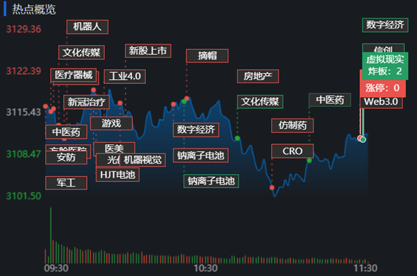 11月18日早盤,A股市場三大指數(shù)漲跌不一,滬深兩市指數(shù)分化,呈深強滬弱格局。截至上午11:30,上證指數(shù)跌0.11%,報3111.92點;深證成指和創(chuàng)業(yè)板指漲幅分別為0.38%和1.14%;滬深兩市合計成交額5815.2億元,較上一交易日增長7.81%??傮w來看,A股市場個股漲少跌多,有43只個股漲停,跌停股0只。