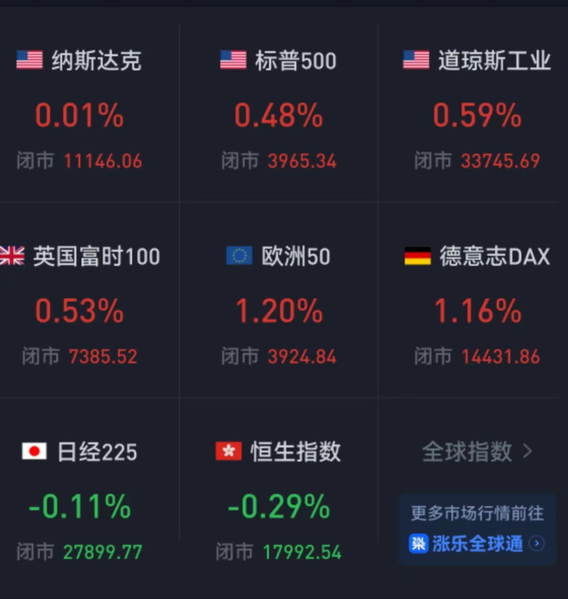 周五,美國(guó)三大股指全線(xiàn)收漲,道指漲0.59%報(bào)33745.69點(diǎn),標(biāo)普500指數(shù)漲0.48%報(bào)3965.34點(diǎn),納指漲0.01%報(bào)11146.06點(diǎn)。本周,道指跌0.01%,標(biāo)普500指數(shù)跌0.69%,納指跌1.57%。