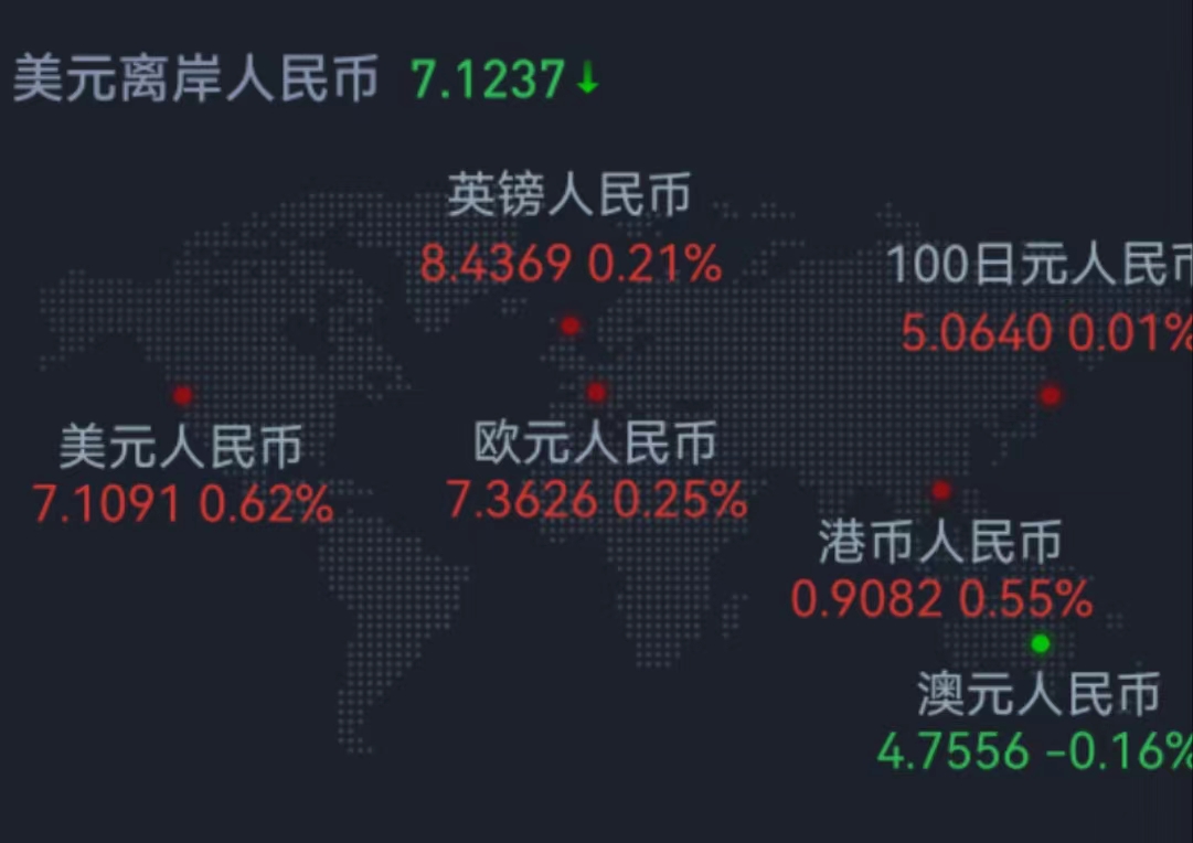 周五在岸人民幣兌美元16:30收盤(pán)報(bào)7.1275,較上一交易日漲16個(gè)基點(diǎn),本周累跌169個(gè)基點(diǎn);周五夜盤(pán)23:30收?qǐng)?bào)7.1160。人民幣兌美元中間價(jià)報(bào)7.1091,調(diào)貶436個(gè)基點(diǎn),本周累計(jì)調(diào)升816個(gè)基點(diǎn)。交易員指出,人民幣可能已經(jīng)見(jiàn)底,震蕩中樞重返7.15附近。