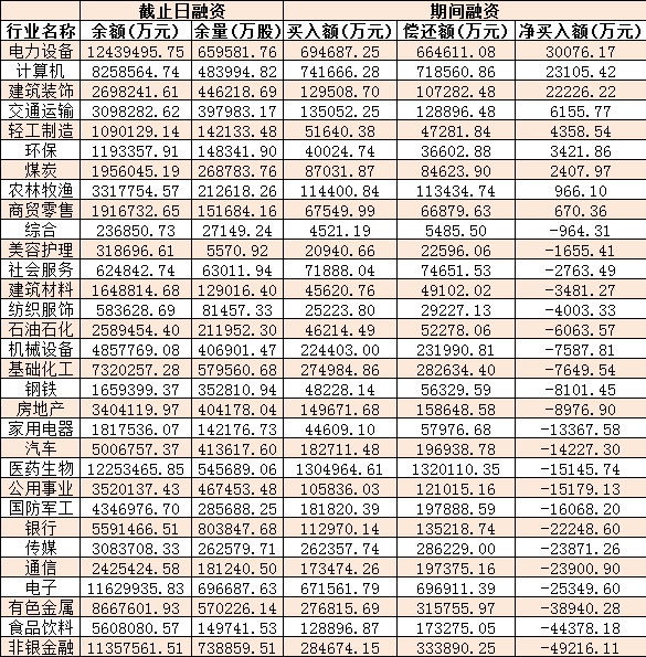 表:11月18日申萬(wàn)一級(jí)行業(yè)兩融交易情況: