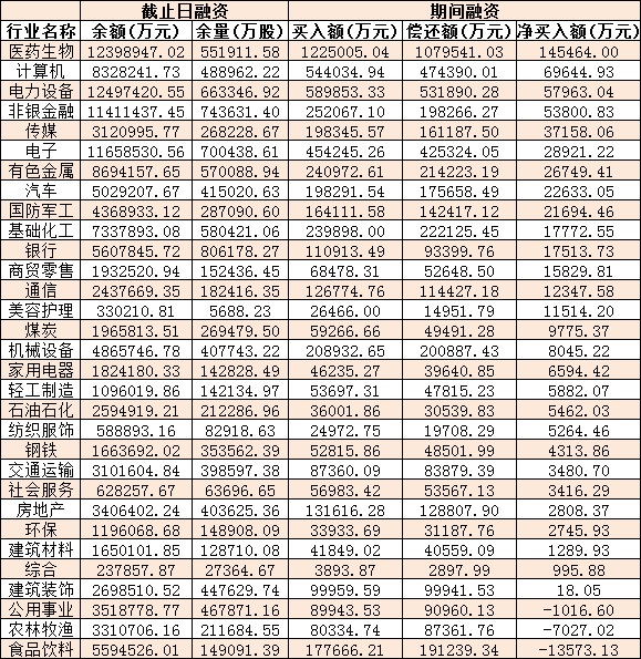 表:11月21日申萬(wàn)一級(jí)行業(yè)兩融交易情況: