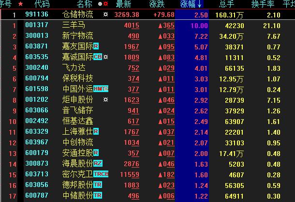 具體來(lái)看,截至上午收盤,倉(cāng)儲(chǔ)物流板塊上漲達(dá)2.5%,漲幅居首。其中,三羊馬漲停。