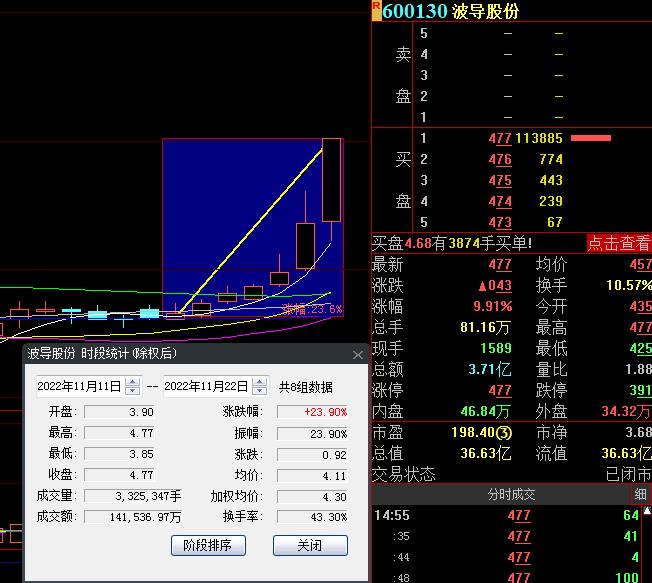 11月22日,波導(dǎo)股份沖至漲停,截至收盤,報(bào)4.77元,連續(xù)8個(gè)交易日實(shí)現(xiàn)上漲,累計(jì)漲幅達(dá)23.9%。