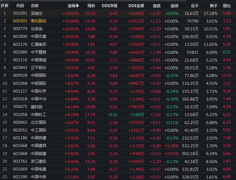 11月22日,建筑裝飾行業(yè)漲幅居首達(dá)3.2%。其中,中國海誠、南化股份、中國交建、匯通集團(tuán)、正平股份、甘咨詢、中天精裝等7只概念股集體漲停。