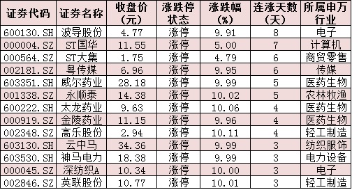 表:連續(xù)上漲3日且今日收盤漲停個(gè)股情況: