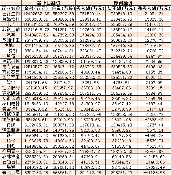 表:11月24日申萬一級行業(yè)兩融交易情況: