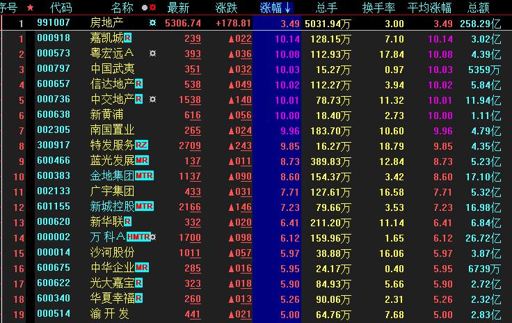 具體看,截至11月25日上午收盤,房地產(chǎn)板塊漲幅居首,達(dá)3.49%。其中,嘉凱城、粵宏遠(yuǎn)A、中國武夷、信達(dá)地產(chǎn)、中交地產(chǎn)、新黃浦等多只地產(chǎn)股集體漲停。