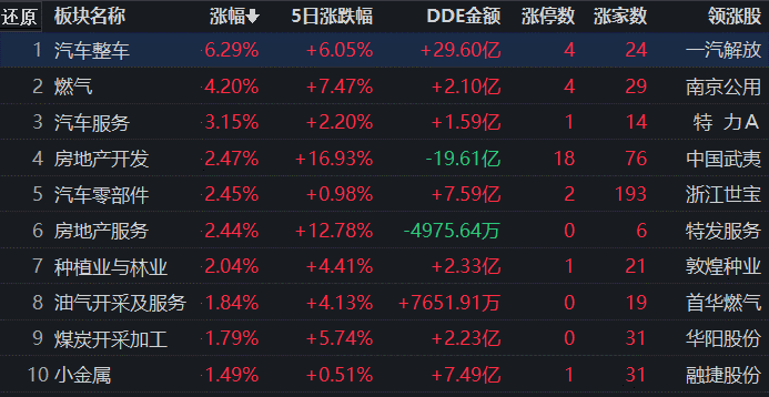 同花順行業(yè)方面,截至11月30日11:30,76類行業(yè)中43類上漲,占比56.58%,其中,汽車整車行業(yè)漲幅居首,達(dá)6.29%,燃?xì)猓?.20)和汽車服務(wù)(3.15%)等行業(yè)漲幅均超3%。酒店及餐飲跌幅居首,達(dá)1.77%。