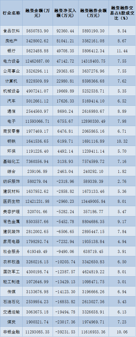 表:11月29日申萬一級(jí)行業(yè)兩融交易情況: