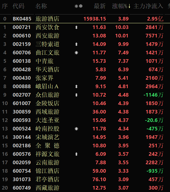 從早盤表現(xiàn)強(qiáng)勢的旅游酒店行業(yè)看,截至12月13日11:30,該行業(yè)交易中的35只個股,有34只上漲,其中7只漲幅超5%。從資金流向看,該行業(yè)今天上午大單資金凈流入額達(dá)2.95億元,居行業(yè)第4位。