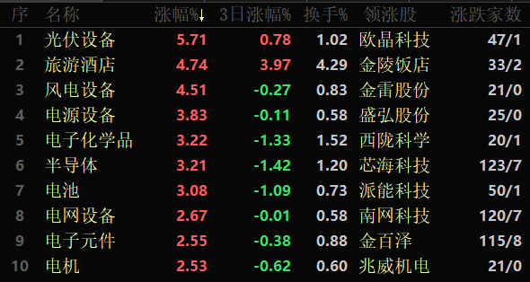 東方財富行業(yè)方面,截至12月26日11:30,86類行業(yè)中73類上漲,占比84.88%,其中,光伏設(shè)備行業(yè)漲幅居首,達(dá)5.71%,旅游酒店和風(fēng)電設(shè)備漲幅也均超4%。此外,教育跌幅居首,達(dá)1.62%。
