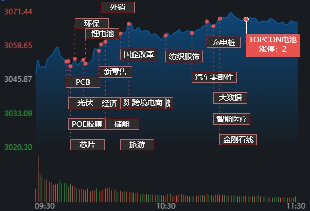 12月26日早盤,A股三大指數(shù)震蕩上揚(yáng)。截至上午11:30,上證指數(shù)漲0.71%,報3067.54點;深證成指和創(chuàng)業(yè)板指漲幅分別為1.07%和1.69%;滬深兩市合計成交額3915.7億元??傮w來看,A股市場個股漲多跌少,有40只個股漲停,跌停個股5只。
