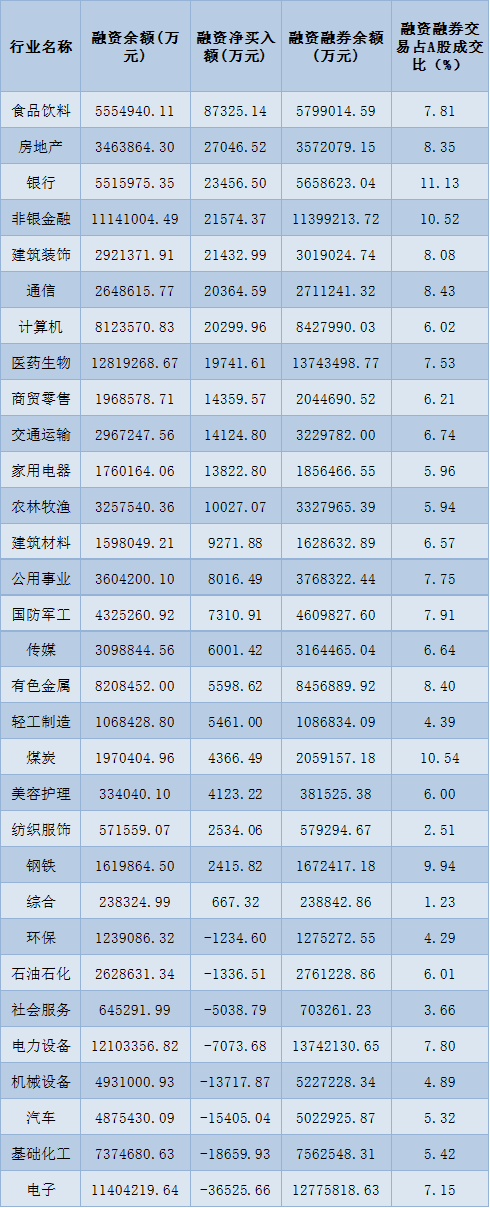 表:12月26日申萬一級行業(yè)兩融交易情況: