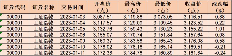 表:近7個(gè)交易日上證指數(shù)表現(xiàn)一覽