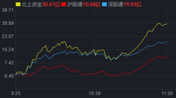 從資金面來(lái)看,2月1日上午,北上資金凈買(mǎi)入金額達(dá)30.61億元,其中,滬股通凈買(mǎi)入10.68億元,深股通凈買(mǎi)入19.93億元。