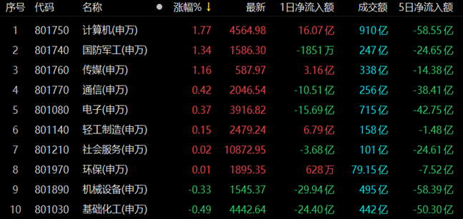 漲停股方面,今日有41只個股以漲停價報收,其中,有14只個股,股價已連續(xù)上漲超過6個交易日;跌停方面,有9只個股跌停價報收。從申萬一級行業(yè)看,計算機行業(yè)漲停股數(shù)量居首,為9只,傳媒緊隨其后,漲停股數(shù)為5只,輕工制造、機械設備和電子等行業(yè)漲停股數(shù)均為4只。