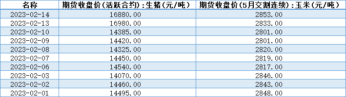表:玉米、生豬期貨主力合約本月以來價格走勢一覽
