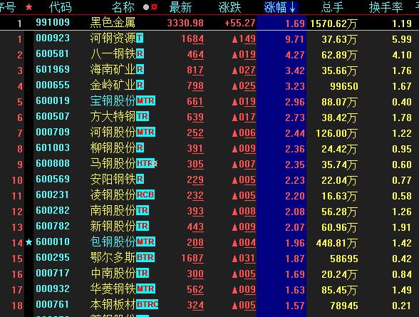 具體看,截至2月21日上午收盤,黑色金屬板塊表現(xiàn)搶眼,漲幅達1.69%。其中,河鋼資源漲幅居首達9.71%,八一鋼鐵漲逾4%。