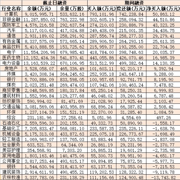 表:2月22日申萬一級行業(yè)兩融交易情況: