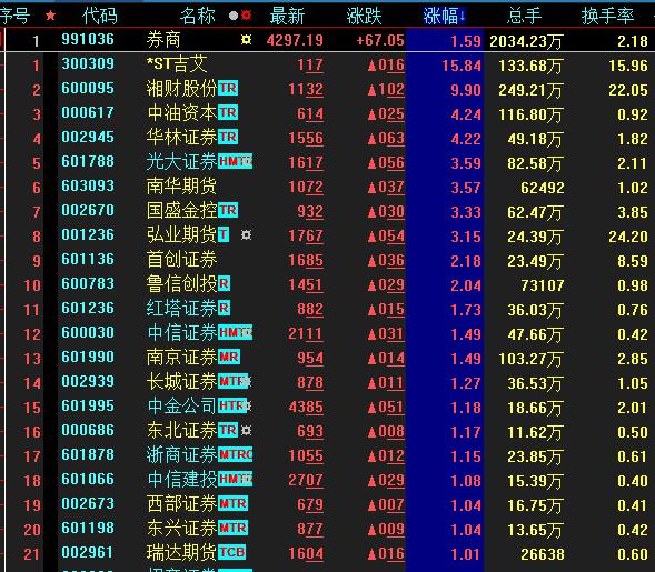 具體看,截至2月23日上午收盤,券商板塊漲幅居首達1.59%。其中,*ST吉艾漲幅近16%。