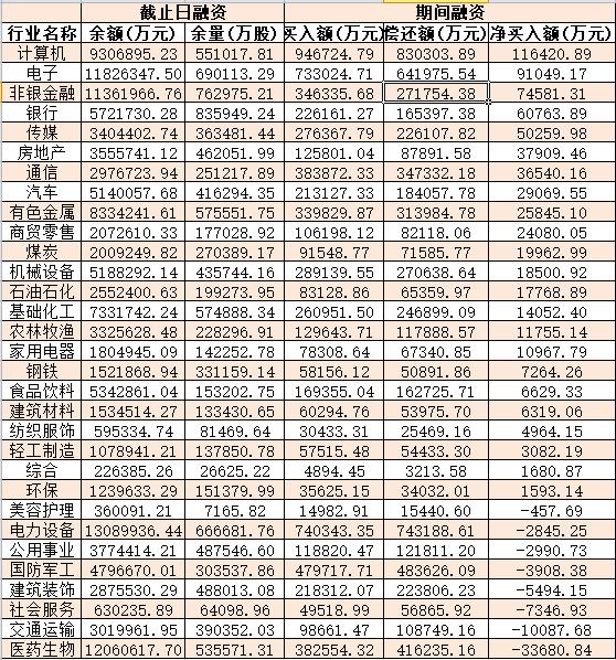 表:3月6日申萬(wàn)一級(jí)行業(yè)兩融交易情況:
