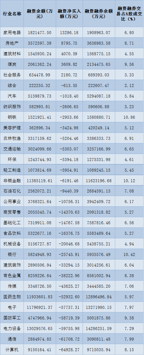 表:3月10日申萬一級行業(yè)兩融交易情況: